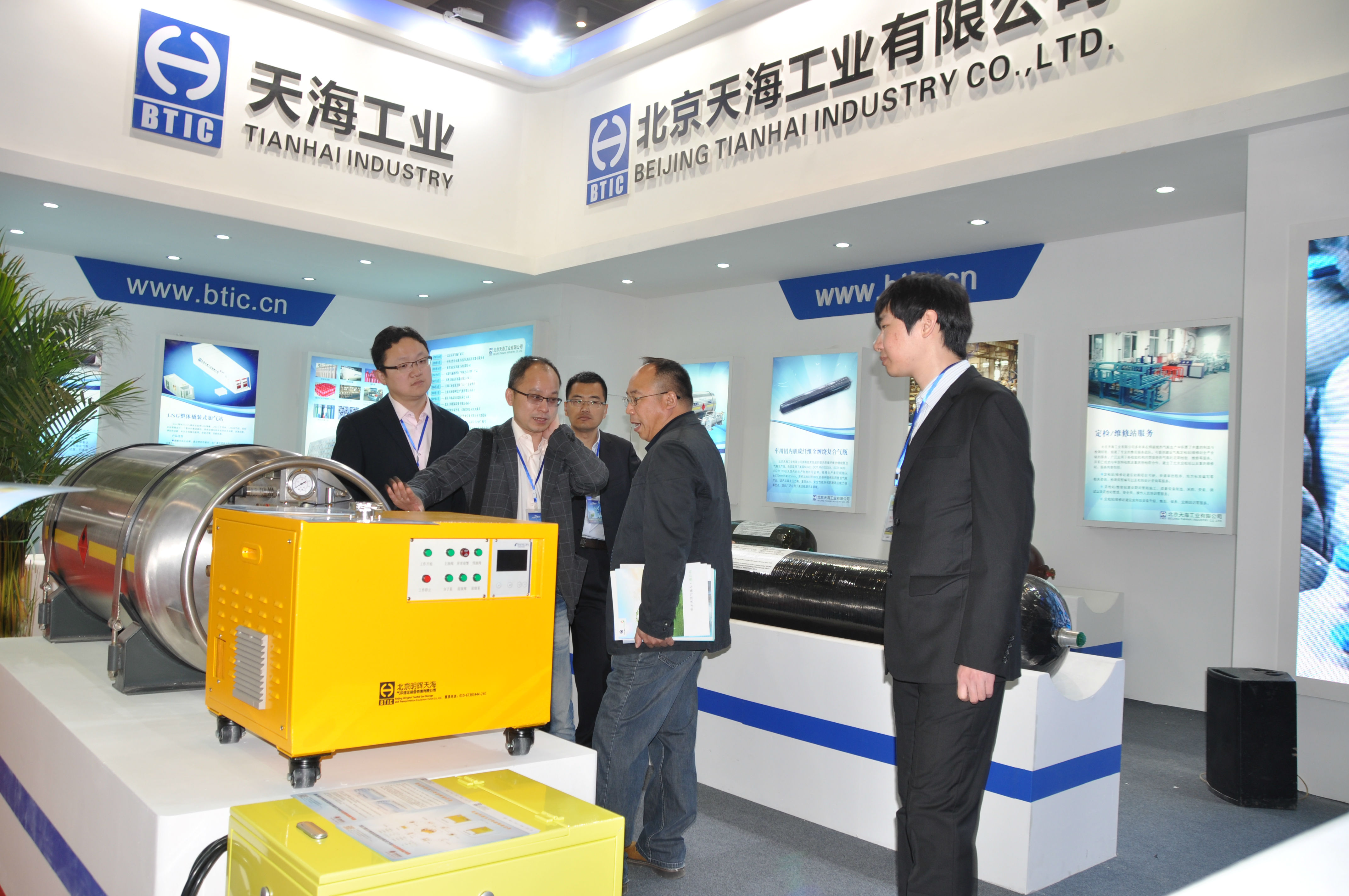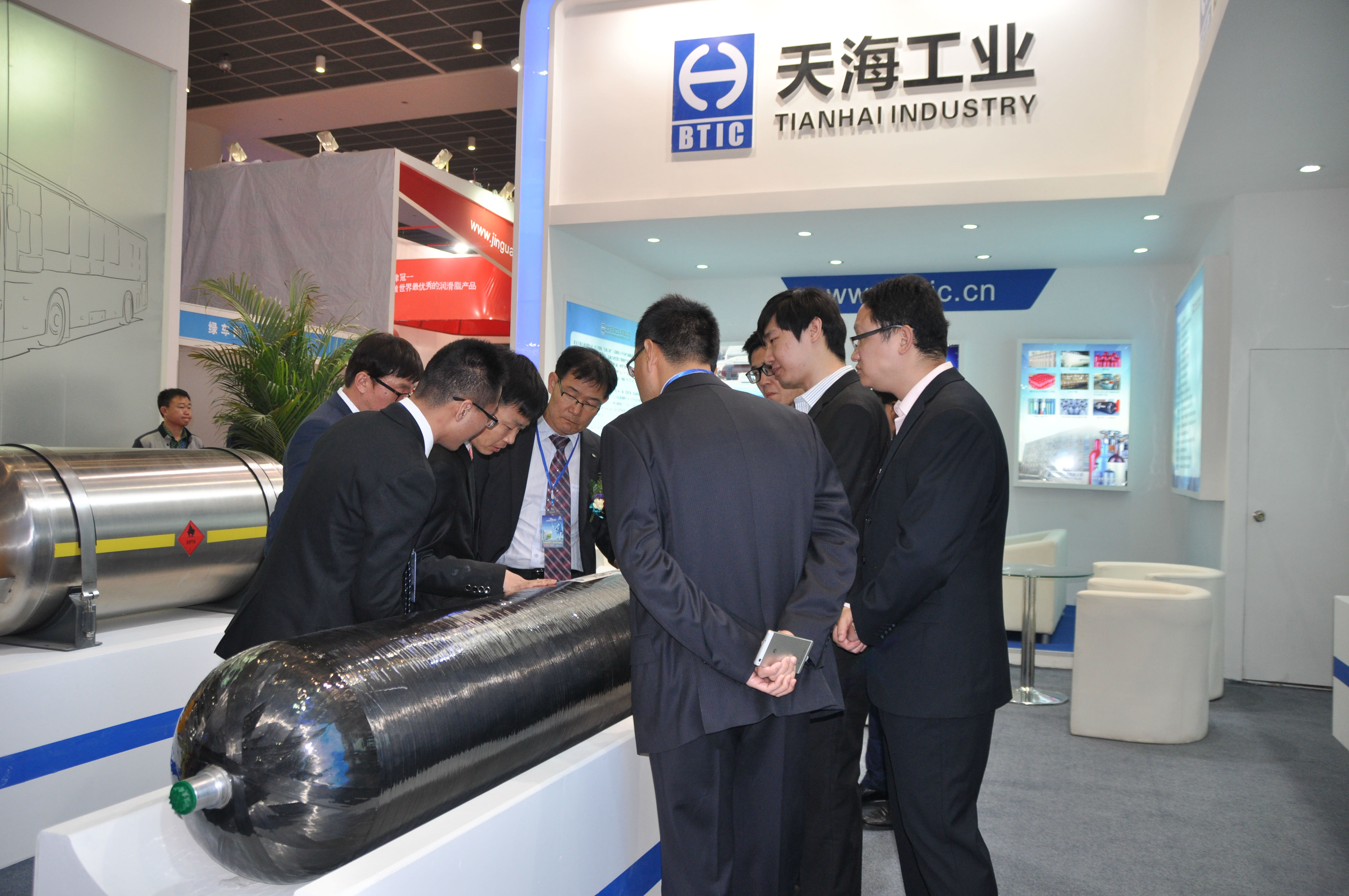 天海工业秉承高效、环保、节能的理念,致力于推动清洁能源汽车燃料系统的发展,提供天然气储运领域全套解决方案。此次展会,不仅展出了公司全新研制的车用铝内胆碳纤维全缠绕复合气瓶(CNG-3型瓶)、还有具有国内先进技术的车用SI型LNG气瓶、更有可为客户提供全面的LNG气瓶定检站/维修服务站解决方案,吸引了天津公交、济南公交、中通客车、青年客车等众多客户及厂商前来沟通洽谈。天海工业丰富的产品种类和优质的服务得到客户的广泛认可,体现了天海工业在天然气产业链中丰富的装备制造能力以及强大的品牌影响力。